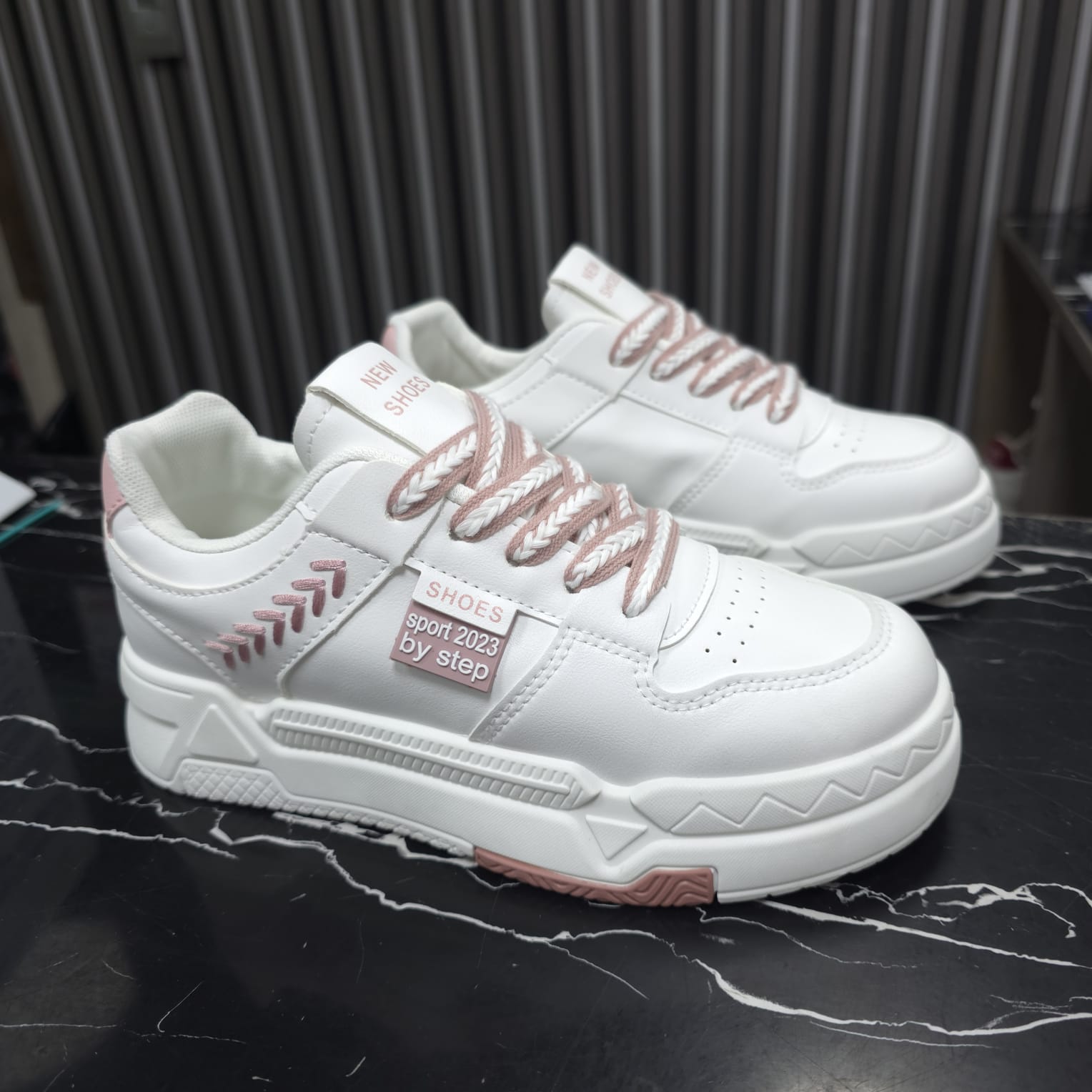 Tenis En Plataforma Importados Suela Plana Nueva Colección White Rosa